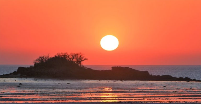 자그마한 섬을 뒤덮을 만큼 그케 떨어지는 일몰은 바다와 갯벌을 가르고 가슴까지 다가와 얼굴과 마음을 물들입니다. 해는 바다로 떨어지고 그 위로 기러기가 무리지어 나는 광경을 상상해보세요. 장화리로 오시면 그 상상이 이루어집니다 .